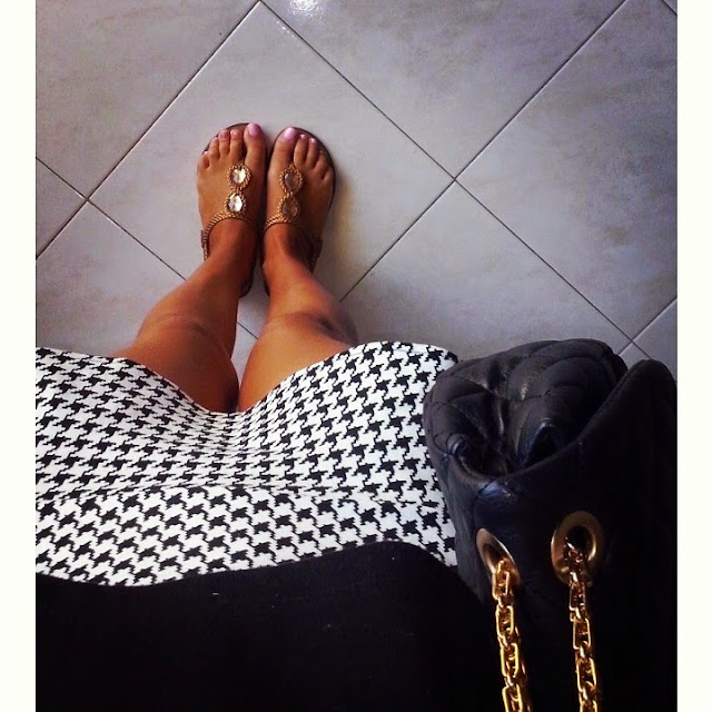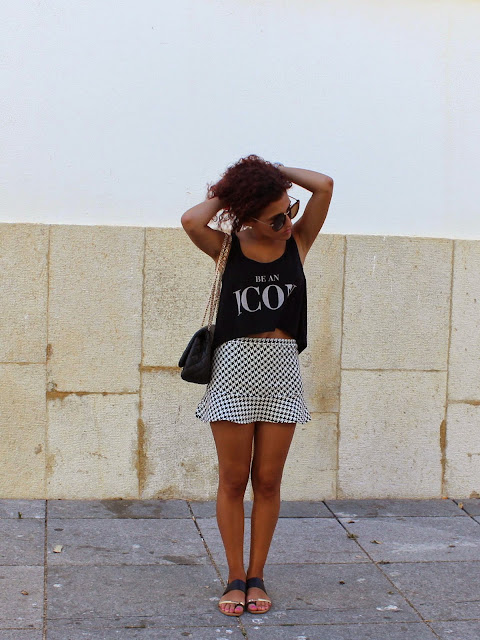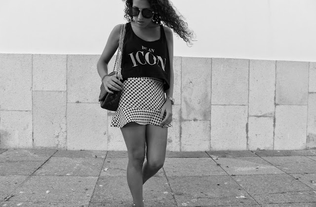 Utilizei este conjunto para ir jantar fora esta semana. A saia foi uma compra nos saldos do ano passado e apesar de não ser a maior entusiasta de padrões, o pied-de-poule é um dos meus favoritos.